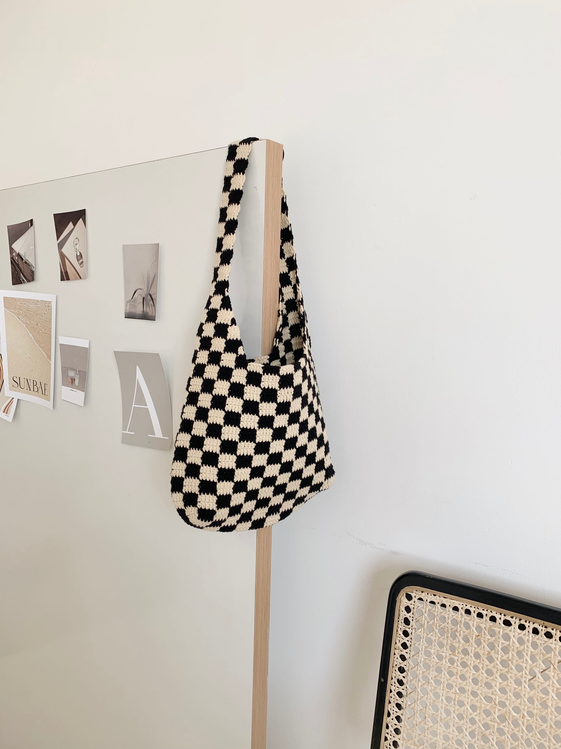 Black Checkered Pattern Crochet Tote Bag