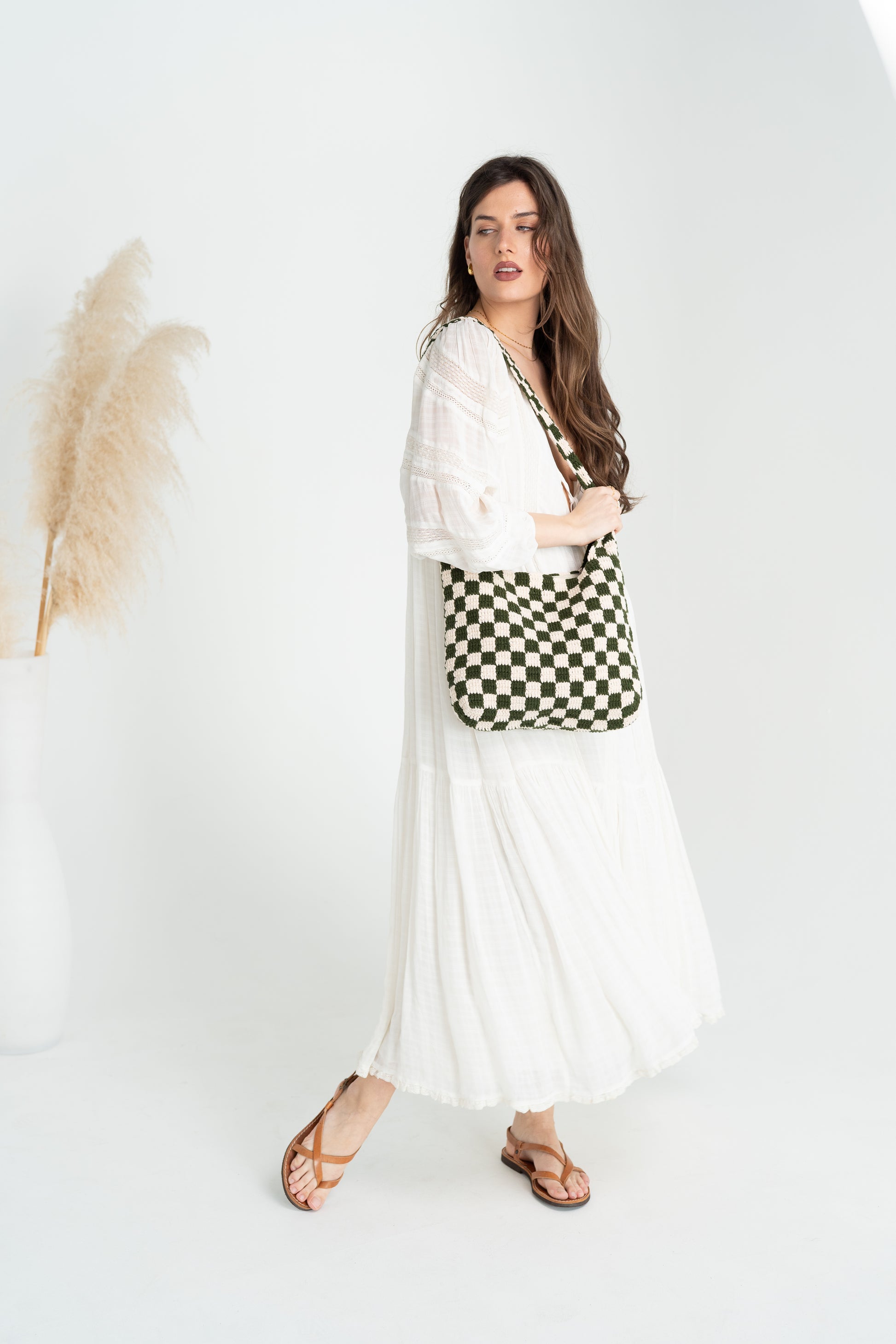 The checkered tote bag is a classic and versatile bag that can be worn for any occasion. It is made of durable materials and has a spacious interior that can easily accommodate all of your essentials. The checkered pattern is both stylish and timeless, and it will never go out of fashion.Â