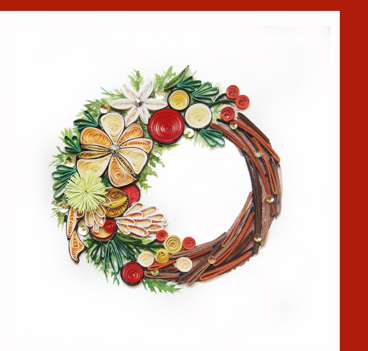 Christmas Wreath Flowers Quilling Card! Handcrafted with precision and care, this exquisite card features intricate quilled flowers arranged in a beautiful wreath design. Whether displayed on your mantel, hung on a door, or sent as a heartfelt greeting, this card is sure to impress. Each delicate petal and leaf is lovingly crafted to capture the magic of the season. Spread joy and warmth this Christmas.