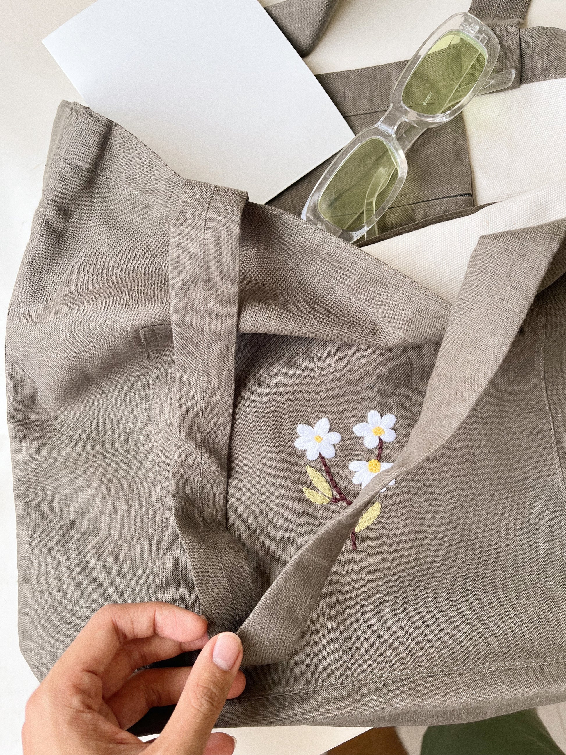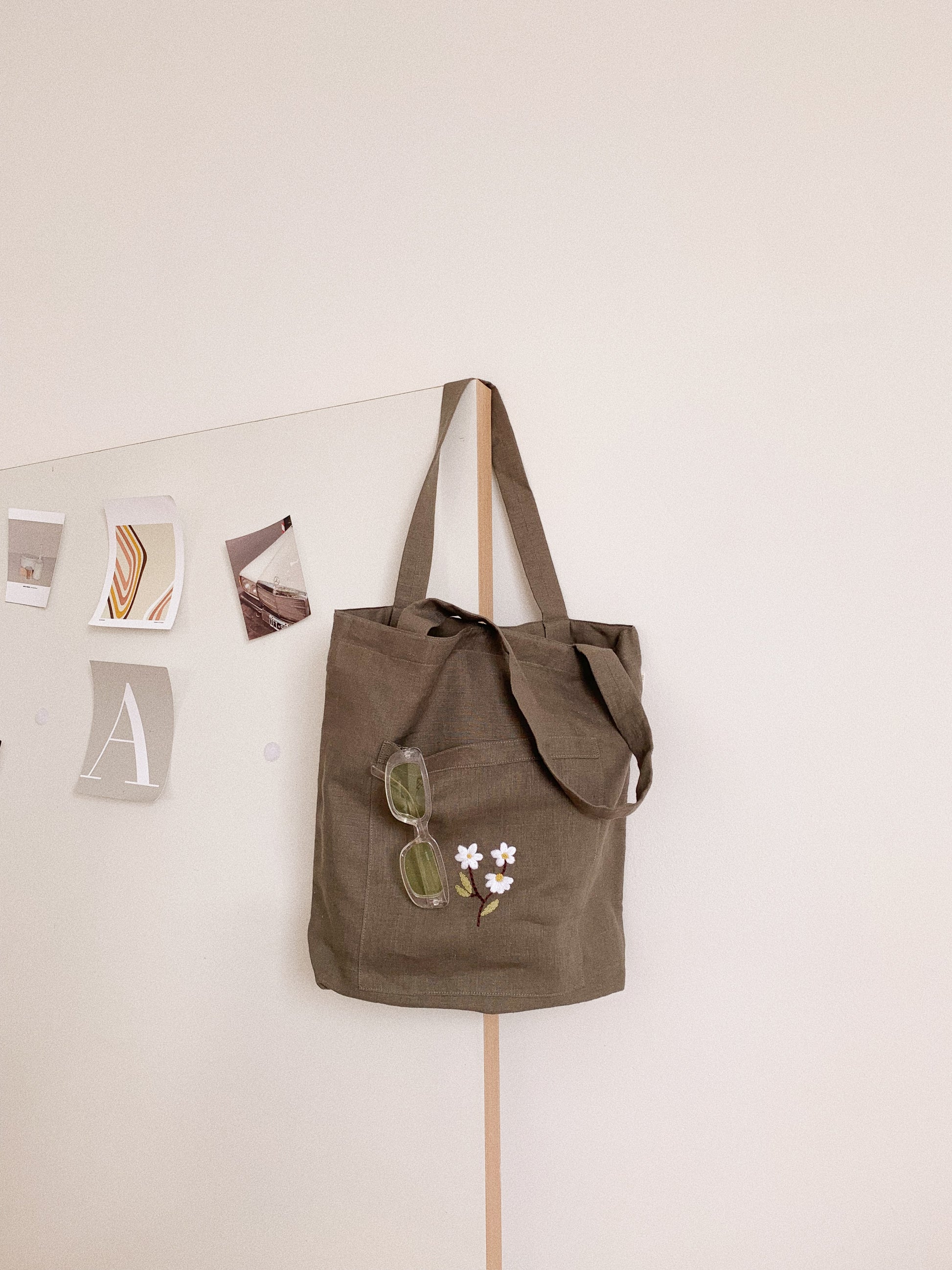 We chose linen fabric as the material for our tote bag due to its durability, and antibacterial characteristic of natural linen so your bag won't attract dirt easily. Our linen tote bag is thoughtfully designed with a hidden magnet button and multiple pockets for your essentials.