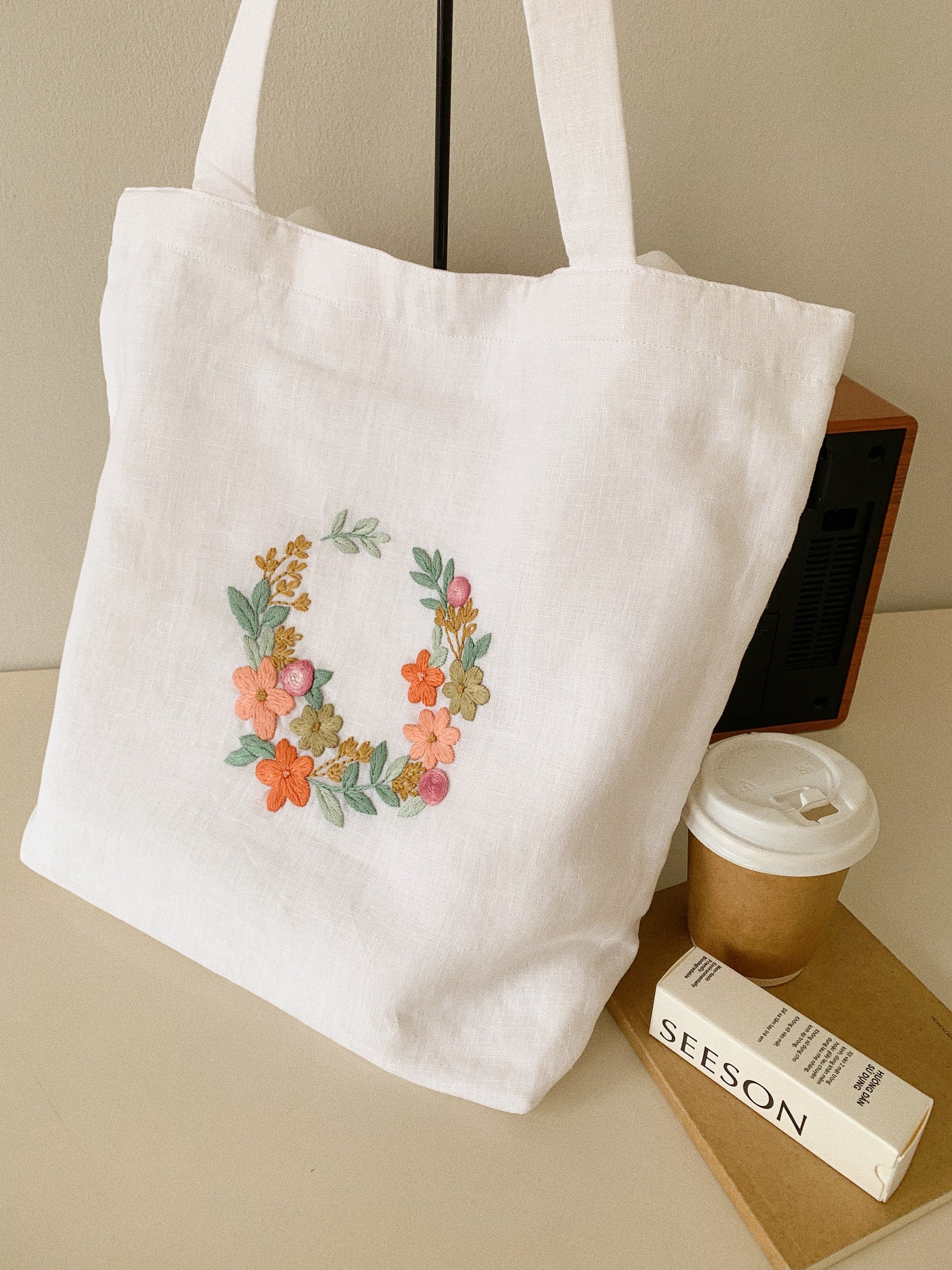 Hoa Mai Wreath- Floral Linen Tote Bag