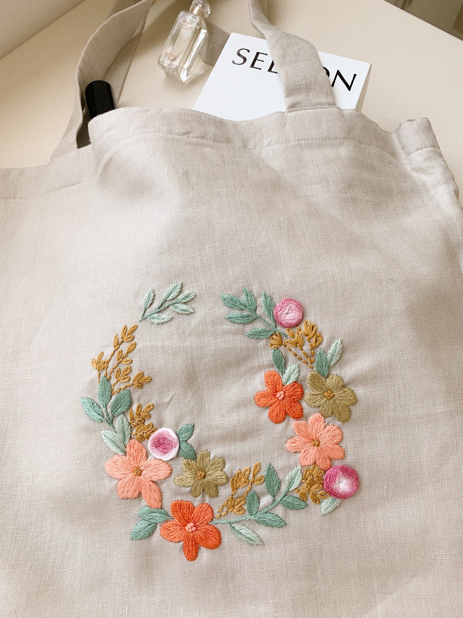 We recommend turning your bag inside out before washing to protect the embroidery. Machine wash with cold water and tumble dry (low heat) is perfectly fine.