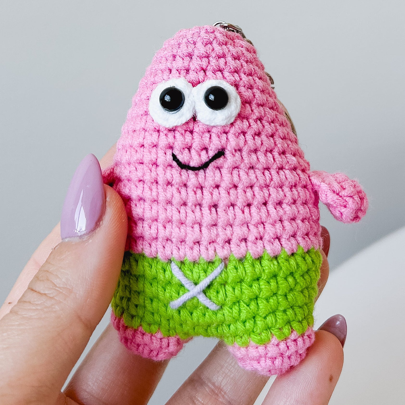 Patrick is like having your very own crochet buddy straight out of a cartoon world. Picture this: a little Patrick Star, right out of a cartoon world into your hands. Imagine having a little Patrick Star with you, bringing a touch of joy.