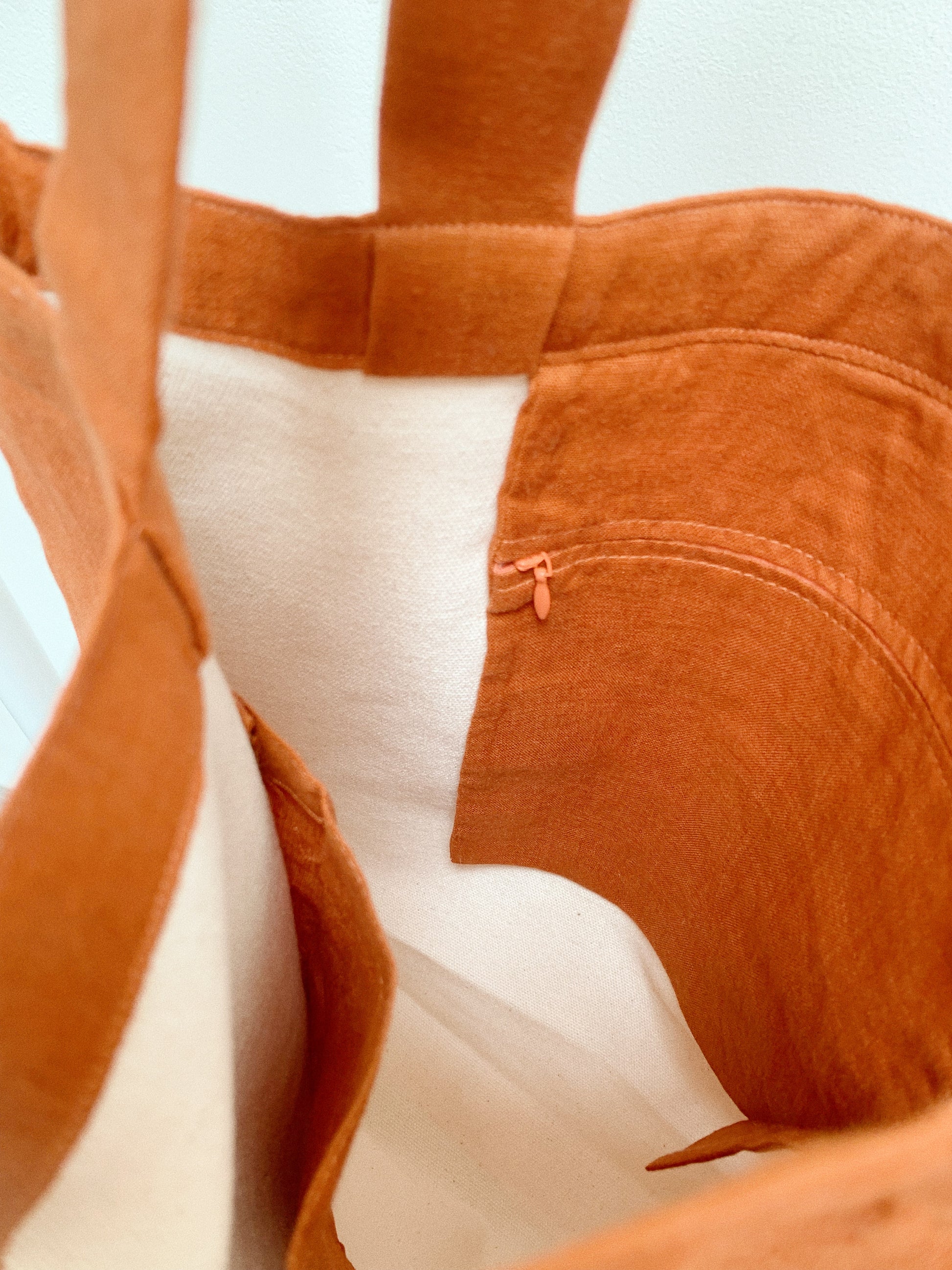 We chose linen fabric as the material for our tote bag due to its durability, and antibacterial characteristic of natural linen so your bag won't attract dirt easily. Our linen tote bag is thoughtfully designed with a hidden magnet button and multiple pockets for your essentials.